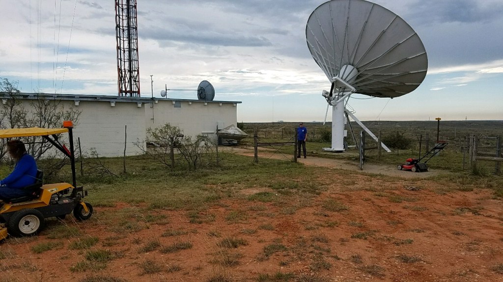 “Here are a few photos from our visit to the W5WX west repeater site (Thursday, 8/17). Don (KC5EZO) kindly donated his Walker mower and his time to cut chest high weeds while Robert (WR9B) and I (Dan, WA8YYE) helped as needed and otherwise “supervised”. In reality, Don did most of the actual work. The site looks much better and there’s now plenty of open space for parking and a clear path to the building. Thanks Don…great job!” ~Dan WA8YYE