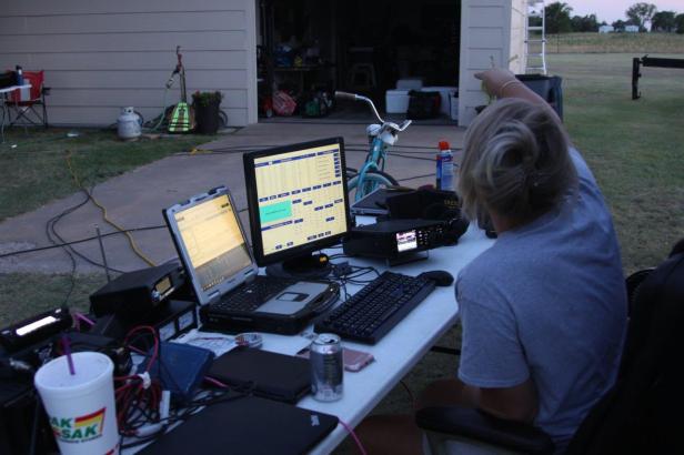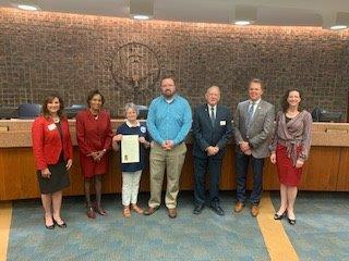L to R: Council Members Elaine Hays, Freda Powell, Kim WK5X and John K5IT (center) , Howard Smith, Eddy Sauer, Mayor Ginger Nelson